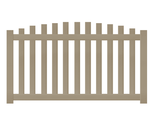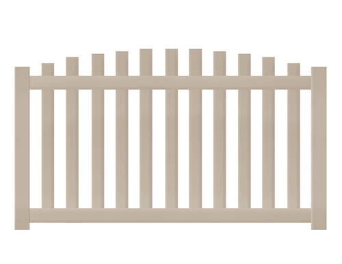 A 4' overscallop vinyl picket fence provides the same functionality as a standard vinyl picket fence, with the added touch that only a scallop could provide.  Each picket on this vinyl fence is cut to the correct height in order to ensure a seamless grade above the top rails.