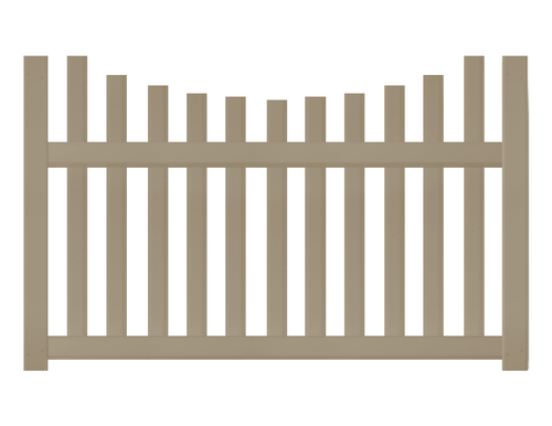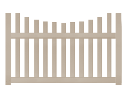 A 4' underscallop vinyl picket fence provides the same functionality as a standard vinyl picket fence, with the added touch that only a scallop could provide. Each picket on this vinyl fence is cut to the correct height in order to ensure a seamless grade above the top rails.