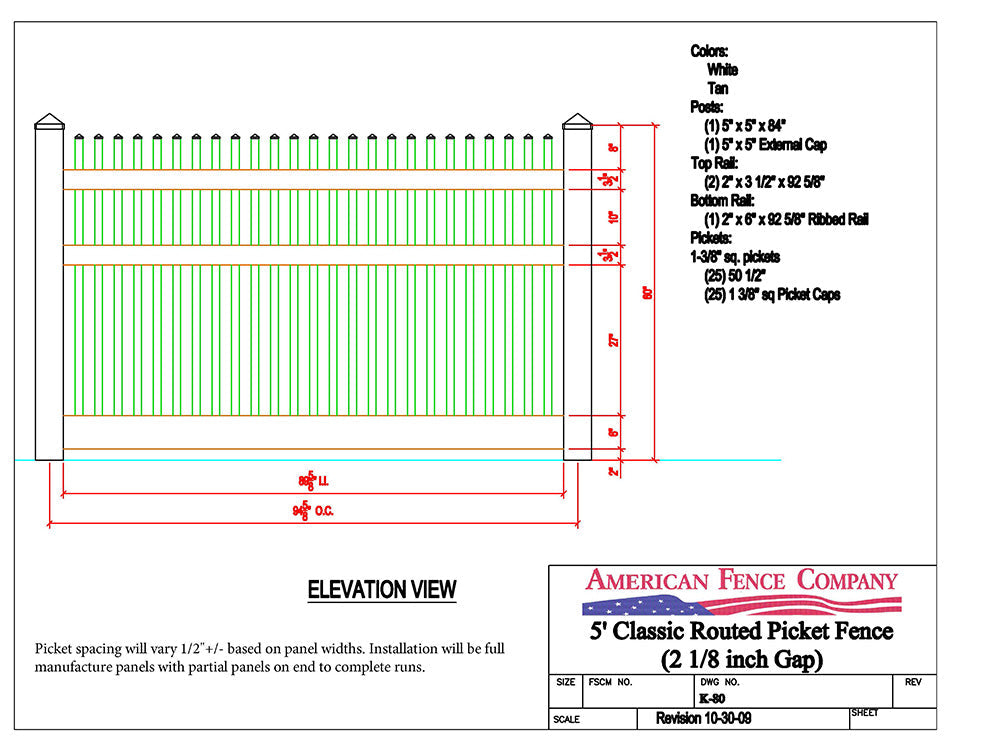 A 5' classic routed picket vinyl fence adds the beauty of narrow pickets with the functionality of a standard picket vinyl fence. This vinyl fence style is a quality addition to any yard.