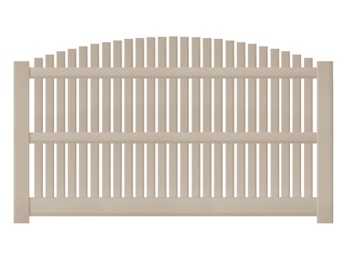 A 5' overscallop vinyl picket fence provides the same functionality as a standard vinyl picket fence, with the added touch that only a scallop could provide. Each picket on this vinyl fence is cut to the correct height in order to ensure a seamless grade above the top rails.