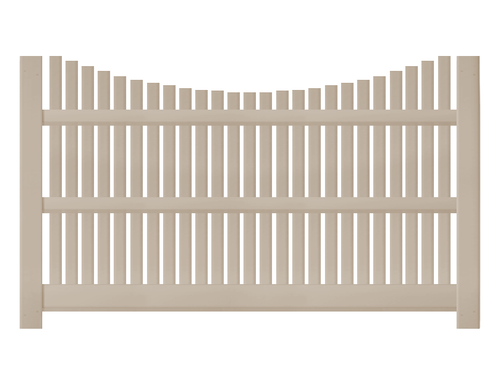 A 5' underscallop semi-privacy vinyl fence combines the style and functionality of standard semi-privacy fence, with the added touch that only a scallop could provide. Each picket on this vinyl fence is cut to the correct height in order to ensure a seamless grade above the top rails.
