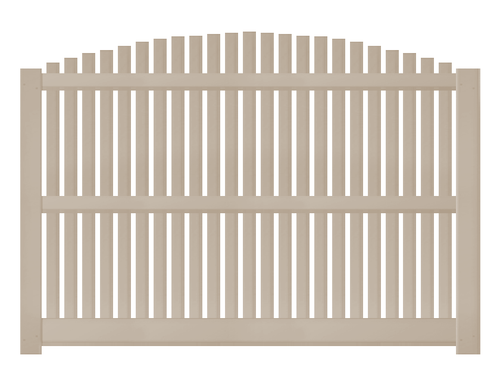 A 6' overscallop vinyl picket fence provides the same functionality as a standard vinyl picket fence, with the added touch that only a scallop could provide. Each picket is cut to the correct height in order to ensure a seamless grade above the top rails.