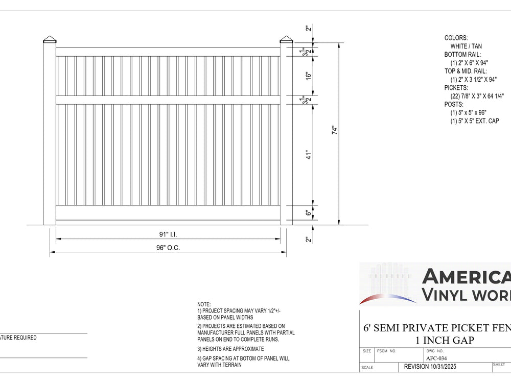 6' Vinyl Semi-Private Picket Fence (AFC-034)