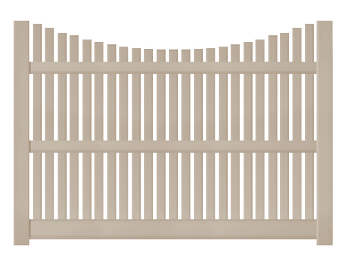 A 6' underscallop vinyl picket fence provides the same functionality as a standard vinyl picket fence, with the added touch that only a scallop could provide. Each picket on this vinyl fence is cut to the correct height in order to ensure a seamless grade above the top rails.