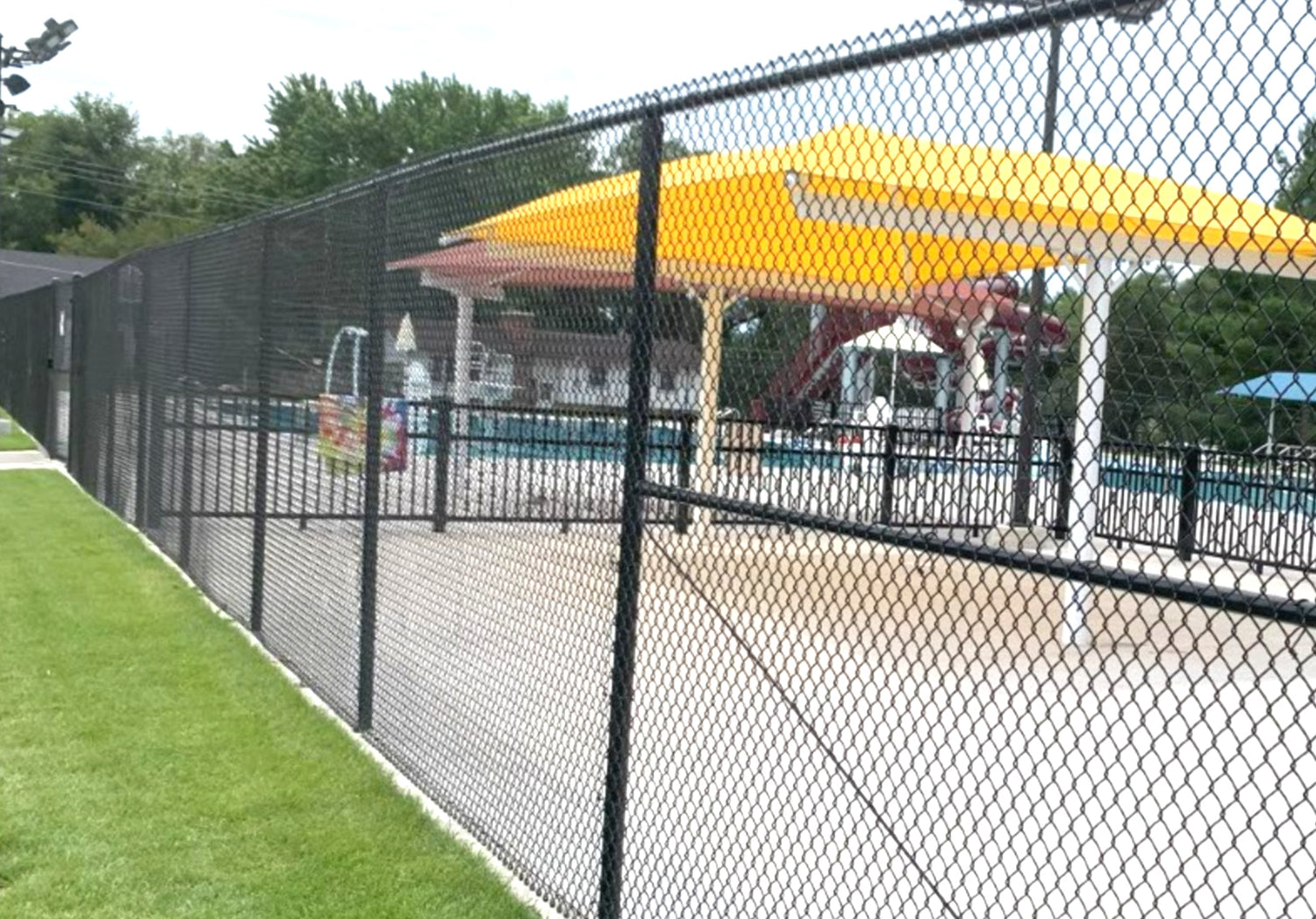 Our commercial colored chain link fence systems use only galvanized chain link...