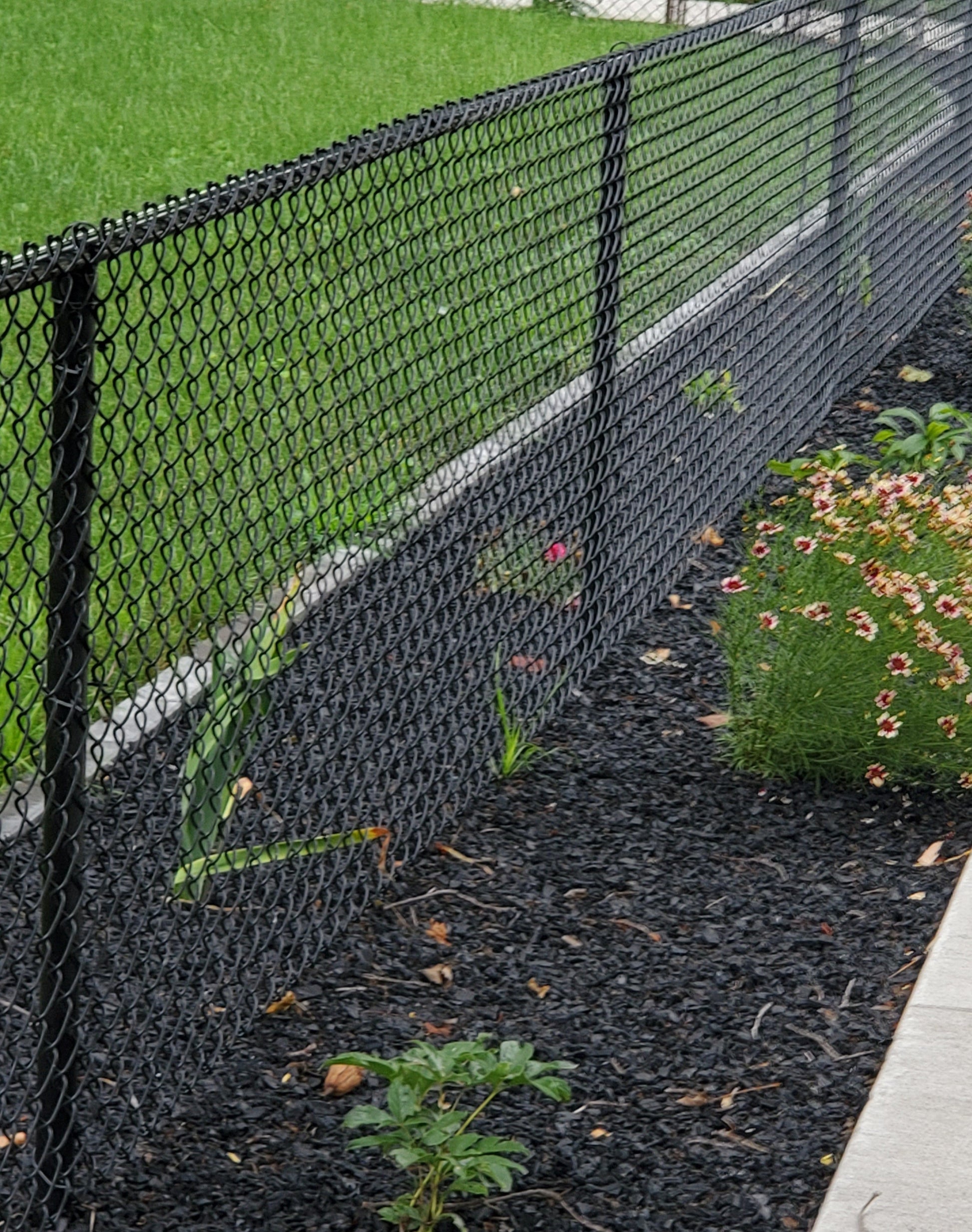 This is 48" (4’) tall by 9-gauge thick by 2-1/4" mesh/diamond black vinyl coated chain link wire/fabric. Chain link is the most affordable fence solution for your home or business! This chain link material is coated with black vinyl to eliminate burrs and sharp surfaces that could cause injury!