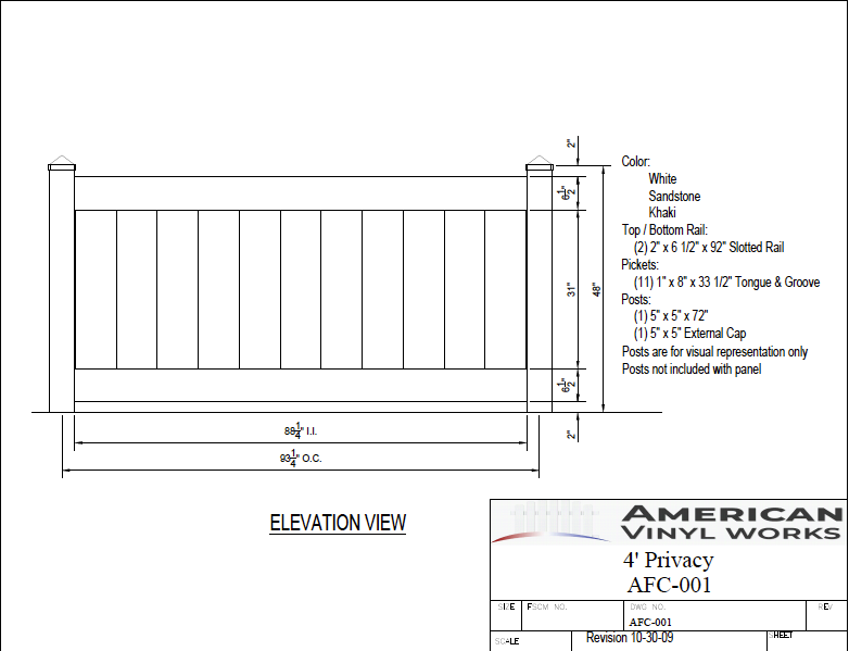 [Price Per Foot - AFC-001] 4' Tall Privacy Fence For Vinyl Fences