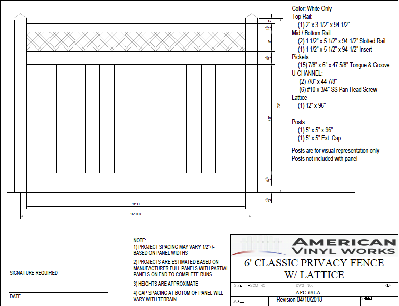 ![[Price Per Foot - AFC-6SLA] 6' Tall Privacy Fence with Lattice Accent For Vinyl Fences](http://pros.americasfencestore.com/cdn/shop/files/AFC-6SLA-AVW_bf7683ac-56fb-4b25-9402-b2f8726ae08f.png?v=1732558329&width=1445)