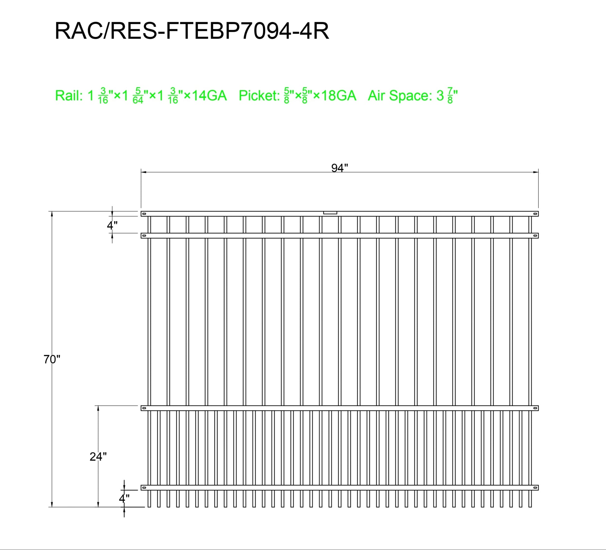- Pickets: 18-gauge, 5/8" x 5/8"